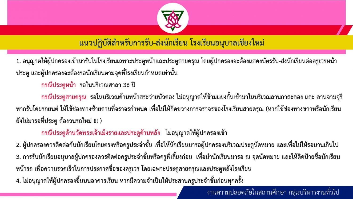 มาตรการเตรียมความพร้อม และแนวปฏิบัติ ภาคเรียนที่ ๑ ปีการศึกษา ๒๕๖๘