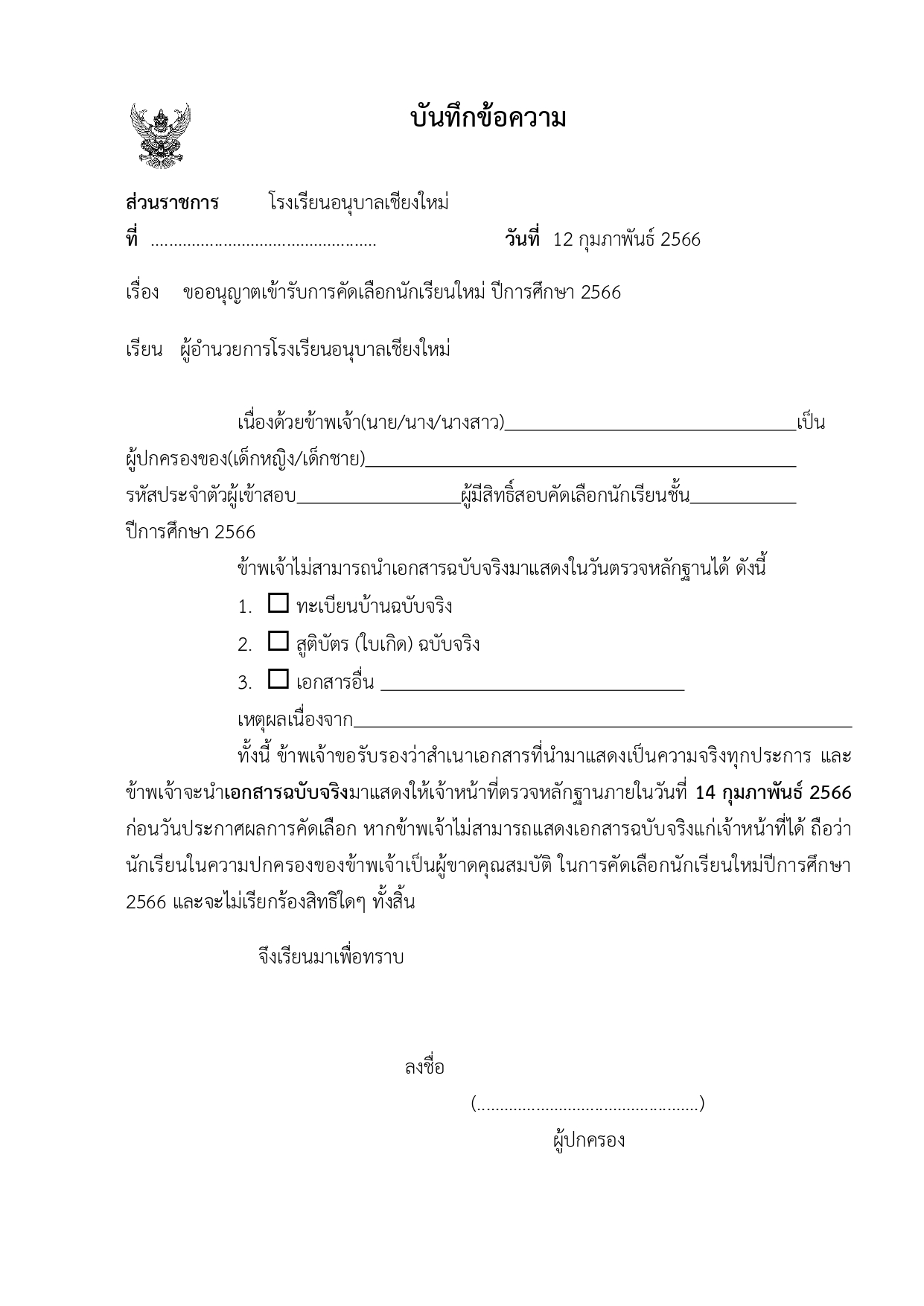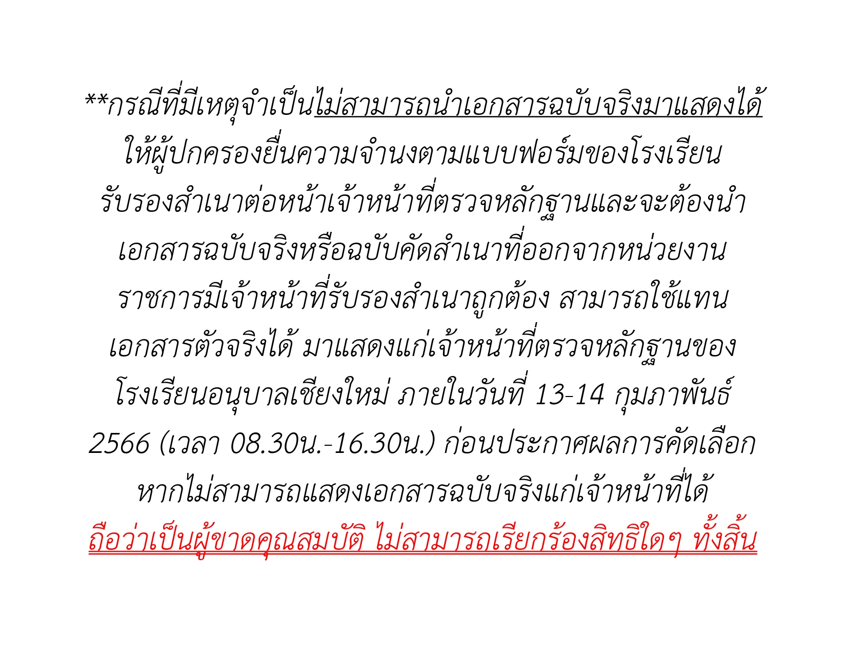 แนวปฏิบัติในการตรวจหลักฐานการสมัครคัดเลือกนักเรียนใหม่ปีการศึกษา 2566