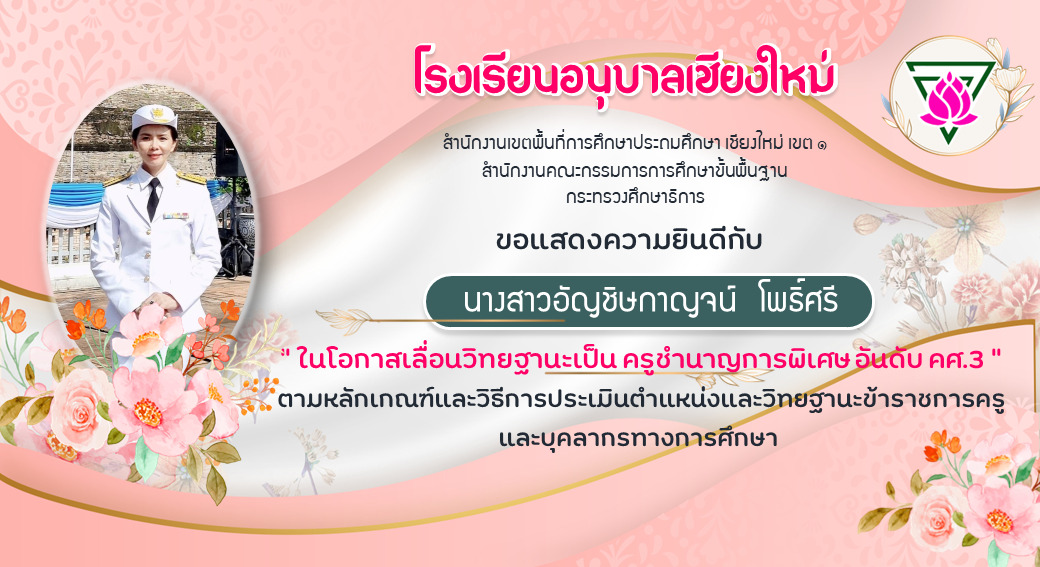 ขอแสดงความยินดีกับข้าราชการครู โรงเรียนอนุบาลเชียงใหม่ที่ได้เลื่อนวิทยฐานะสูงขึ้น