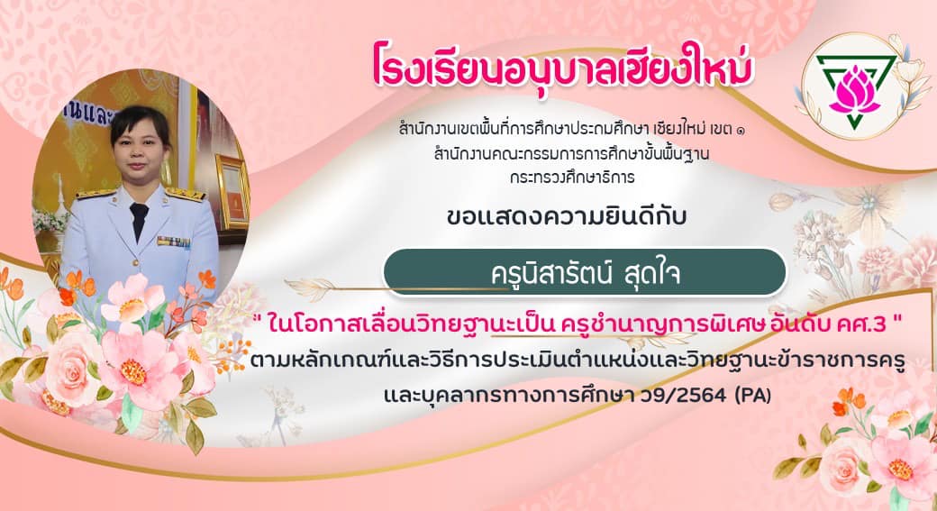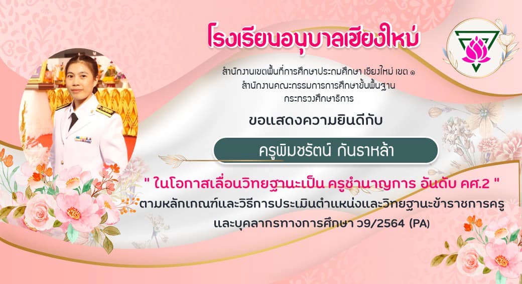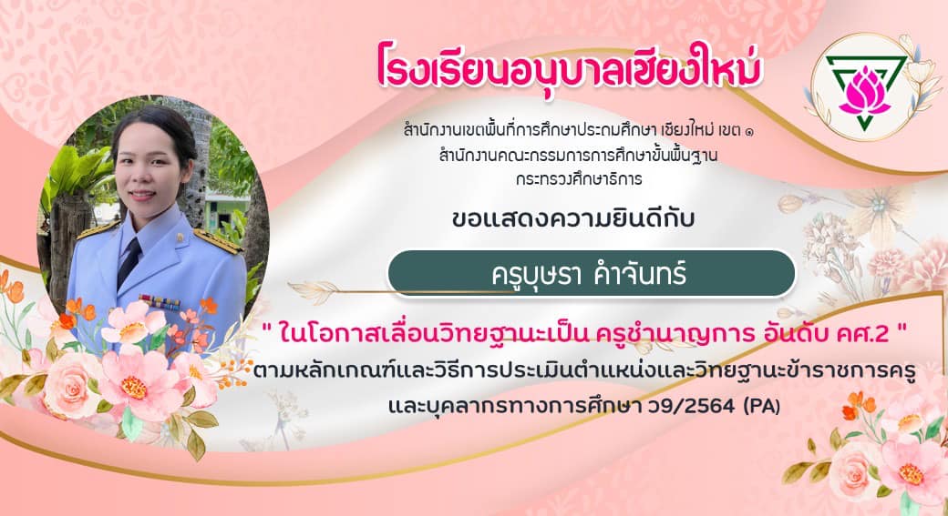 ขอแสดงความยินดีกับข้าราชการครู โรงเรียนอนุบาลเชียงใหม่ที่ได้เลื่อนวิทยฐานะสูงขึ้น รับคำสั่งจากเขตวันนี้